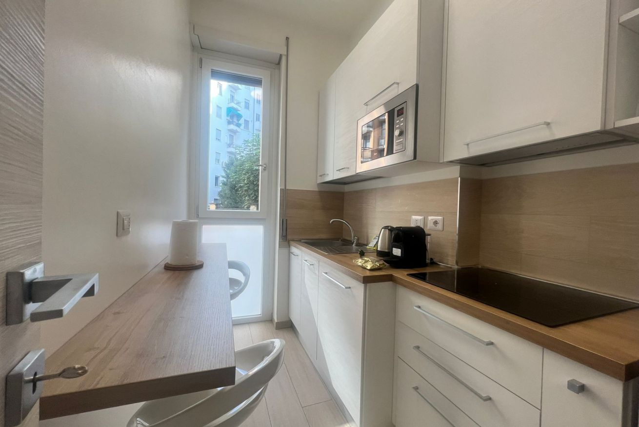 Nei pressi di Corso Lodi, vicinanze fermata della metropolitana linea Gialla MM Brenta, proponiamo In via Serlio a Milano, in un contesto residenziale di un edificio con portineria, un nuovo appartamento ristrutturato situato al piano terra con esposizione interna (tranquillo). Si tratta di un piccolo trilocale con una camera da letto (con un letto matrimoniale che all’occorrenza e previa richiesta diventano due letti singoli) con aria condizionata, corridoio a cui si può accedere al bagno con doccia dove è stata inserita anche la lavatrice, piccola cucina con piano induzione, bollitore, macchina del caffè e piccolo tavolino adatto per 2 persone (con la presenza di uno split di aria condizionata) e soggiorno con tavolo da pranzo e divano letto (anche qui presente split per aria condizionata. L’appartamento è in uno stabile molto carino con portineria, di fronte ci sono dei giardinetti con delle panchine. .La posizione dell’appartamento si trova a 5 minuti a piedi dalla fermata linea metropolitana MM Brenta, nelle vicinanze un comodo supermercato Carrefour. Il quartiere di Porta Romana dista un paio di fermate di metropolitana, così come anche San Donato Milanese, centro business di molte aziende e sede dell’ospedale IRCCS Milano. Fondazione Prada cosi come aeroporto di Linate nelle vicinanze